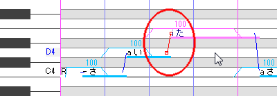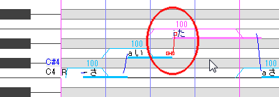 まずエディタ上でピッチを動かしたい音符を選択します。