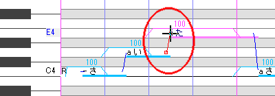この増やした四角にカーソルを合わせてドラッグすればピッチが弄れます。