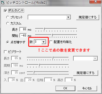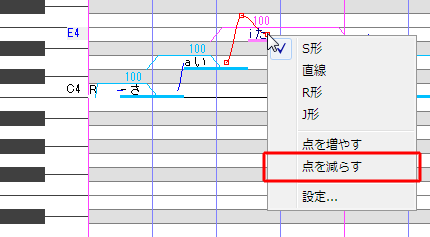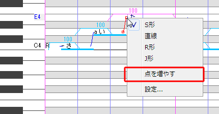 ちなみに一気に沢山点を増やしたい場合は音符の上で右クリック→「ピッチ」(ショートカット:Ctrl+T)で