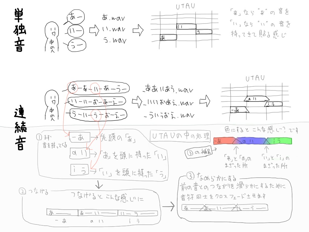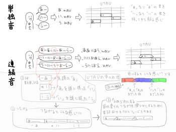一応単独音と連続音の違いが分からない方向けに説明っぽいものを書いてみました。(クリックで大きくなります)